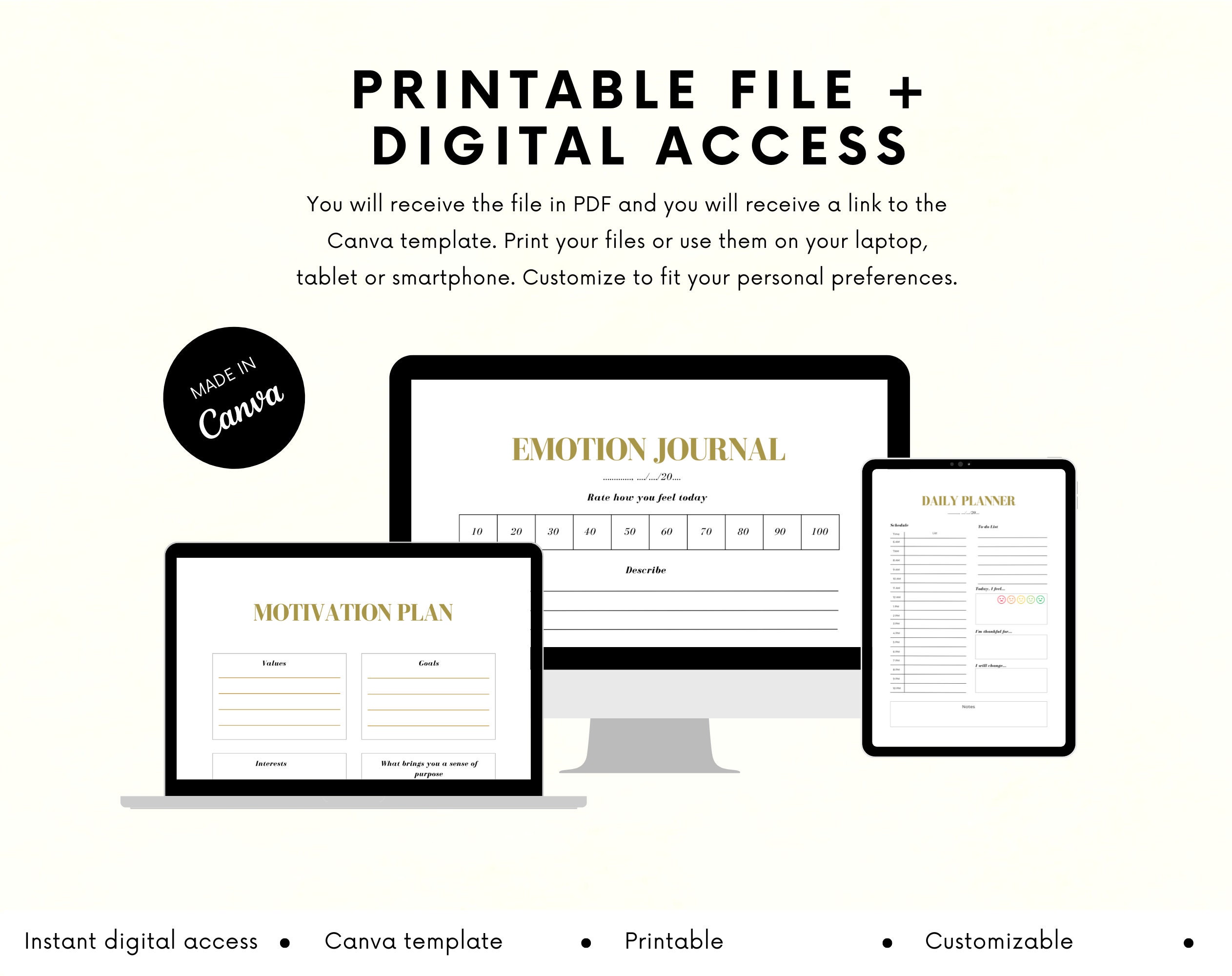 ♦ After having purchased the Daily ADHD Planner for Adults, you can download it and use it either on your laptop/tablet/computer or print it to fill it in by hand and take it with you anywhere you go!