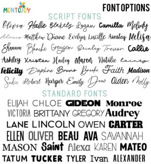 Complements any design Montojoy's assortment of personalized wall name signs is an ideal choice for enhancing the decor of any room, whether it's designed for a baby boy, baby girl, or a neutral nursery. Featuring a range of font styles and color choices, our kids' room name signs can be tailored to harmonize with any design. Crafted by hand using top-notch wood materials, our wall name signs are built to last and introduce a personalized touch to every setting. Whether you're adorning a nursery, playroom, or bedroom, our customized name sign will seamlessly blend with any decor style.