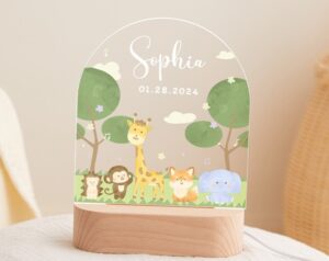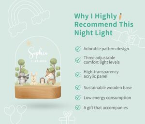 ✨✨✨Welcome to my shop! Every item you see here has been meticulously designed and crafted by me. From the conception of design ideas to the final creation of each piece, I pour my passion and attention to detail into every step. By choosing my products, you and your children will receive truly unique and lovingly made items. Thank you once again for your support. Features: ????????????1. Creative Display: Carefully designed animal patterns are the creativity of me. ✨✨✨2. Personalized Design: Adding elements like the child's name and their favorite animals gives it special meaning and uniqueness. ????????????3. Multiple Scenes: Whether it's a bedside lamp, on the desk, or anywhere that requires additional lighting, it is also a toy that brings fun and surprises to children. ????????????4. Safety and Aesthetics: The wooden base ensures durability and safety, while the acrylic night light provides a transparent and aesthetic appeal. ????????????5. Unique Gift: Whether it's a birthday, holiday, or special anniversary, a customized night light is a special gift for children, family, or friends. ????????????Please note: 1. The night light charger is designed for European specifications. 2. Upon receiving the product, you may be curious about the reverse side of the design. Please be aware that there is a protective film on the acrylic panel, and once removed, you will see the front-facing design.
