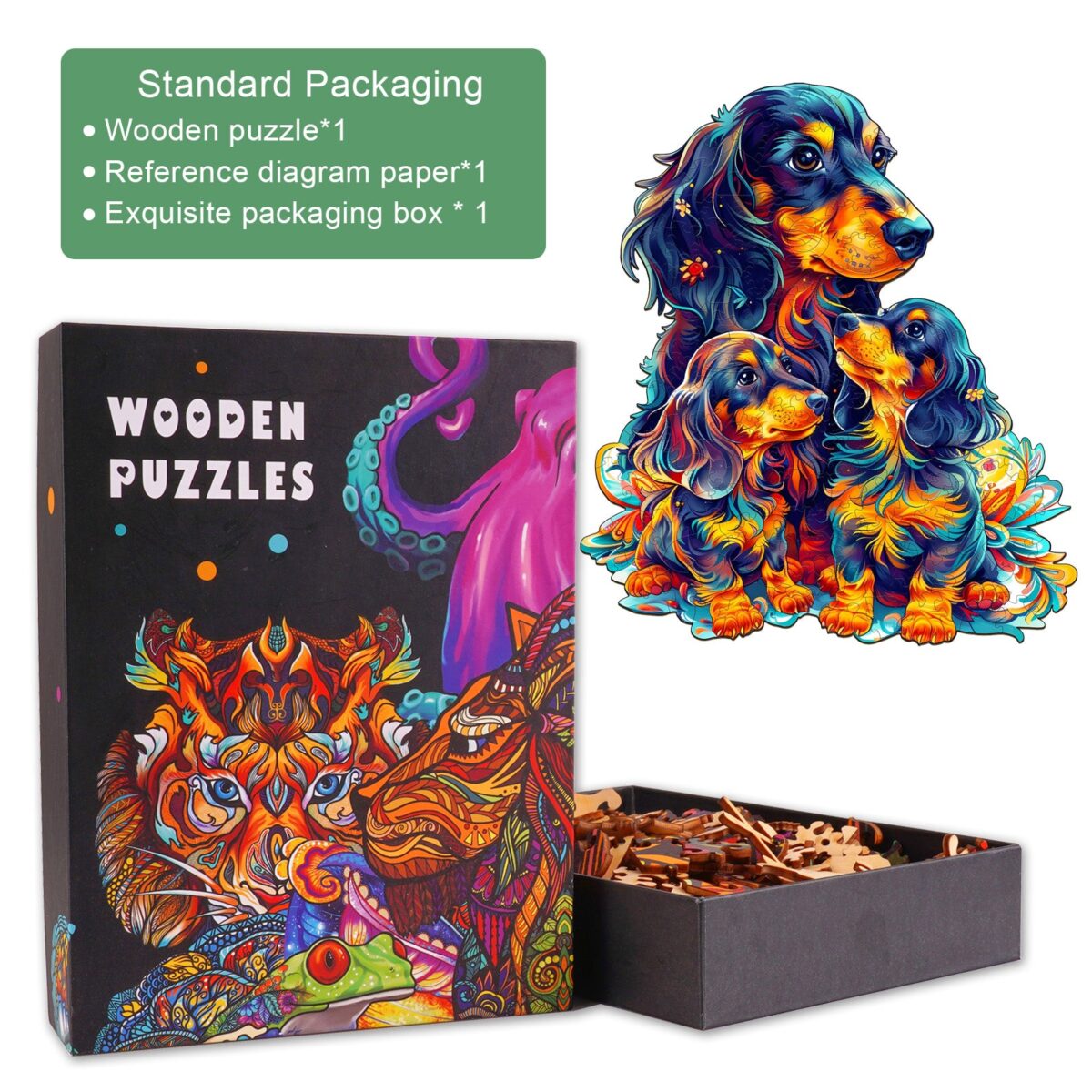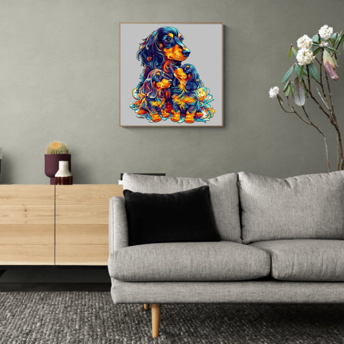 Long-Haired Dachshund Family Wooden Jigsaw Puzzle
