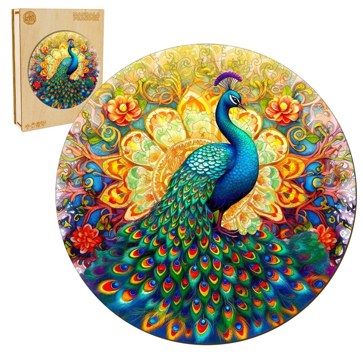 Mandala Peacock Wooden Jigsaw Puzzle