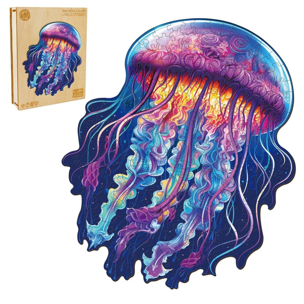 Watercolor Jellyfish Wooden Jigsaw Puzzle